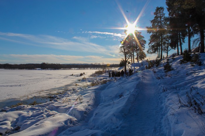 Крещение, морозов нет) но погода просто супер. Лёгкий минус в виде -5, яркое солнце и немного ветра.