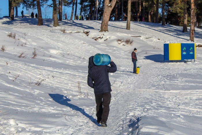У родника собрались "страждущие", которые в честь крещения набираю воду из родника.....