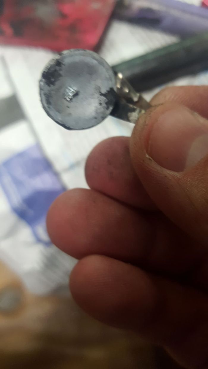 Видны попытки запаять трещины, которые ни к чему не привели.