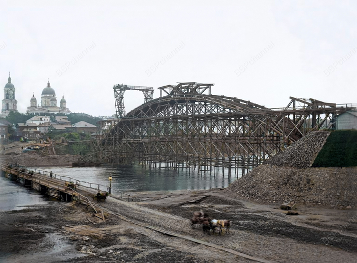 Строительство моста Белелюбского. Боровичи, 1904 год.