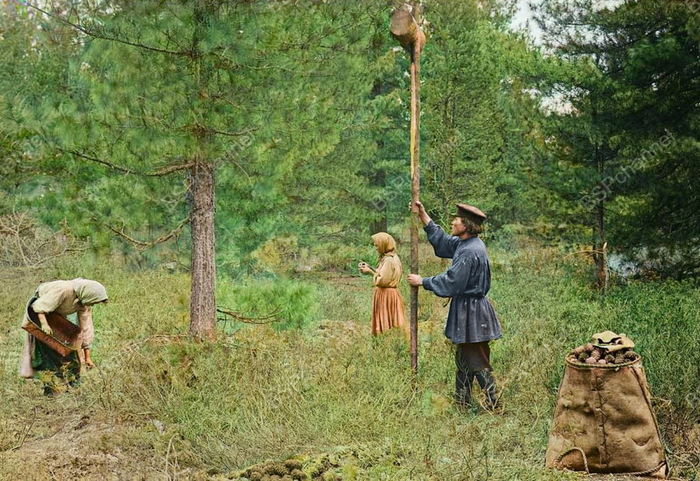 Валежные шишки упавшие на землю в основном собирали женщины и дети, особенно в семьях, где не было взрослых мужчин.