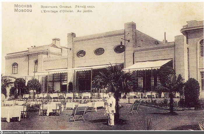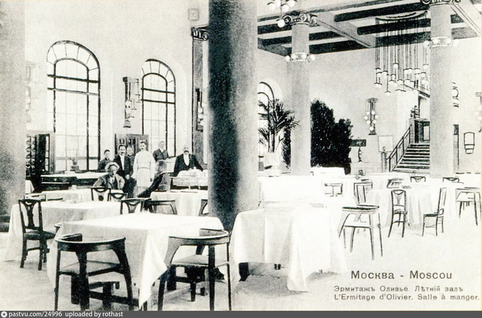 В 1864 году московский купец Яков Пегов и французский повар Люсьен Оливье открыли на углу Петровского бульвара и Трубной площади «Эрмитаж», ресторан с гостиницей и банями.
