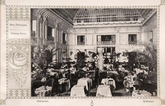 Ресторан славился своей изысканной кухней и богатством интерьеров. Здесь организовывались роскошные банкеты.