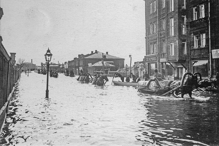 Одно из самых сильных наводнений в Москве произошло в 1908 году. В апреле, на Страстную неделю городские улицы и площади 5 дней напоминали собой венецианские каналы.