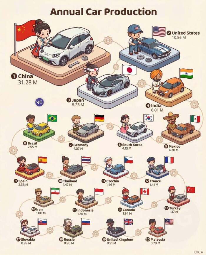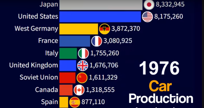 Производство автомобилей по странам 1913 - 2025. Интересная и наглядная статистика!