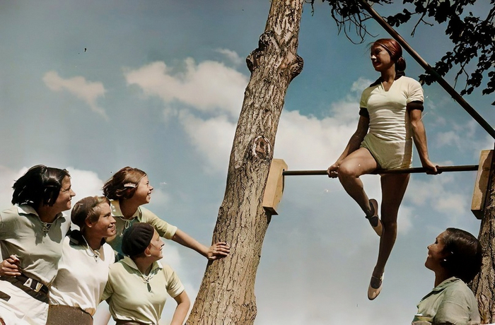 Дом отдыха «Связист». Студентки Московского политехникума связи им. Подбельского из группы выпускников техников дальней связи.