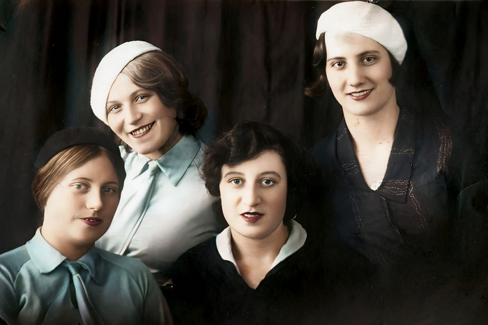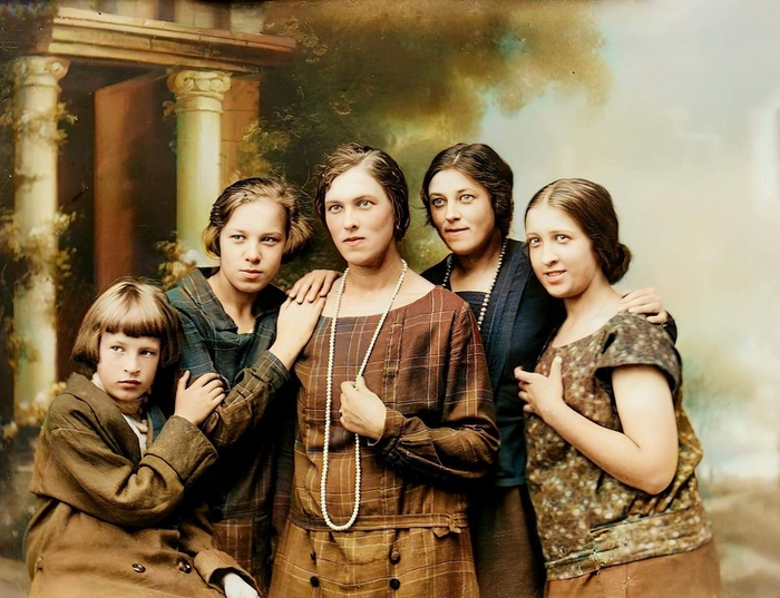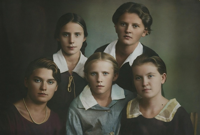 Ирма Лилиенталь, Ольга Безделига, Эльза Лилиенталь, Лидия Безделига, Люция Грубе. Двоюродные сестры.
