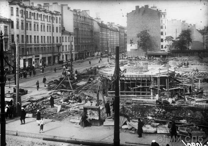 Идёт строительство грандиозного общественного туалета на Большом проспекте Петроградской стороны. Туалет был совмещён с остановкой общественного транспорт и был просто огромным. Собственно, это его и сгубило - говорят, что одной из главных причин, почему его впоследствии снесли - был ужасный запах, который разносился на несколько кварталов. А представьте, каково было людям, которые жили рядом с этим милым местечком?
