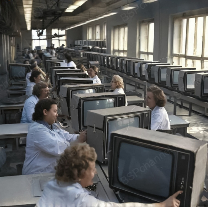 В цехе сборки телевизоров Александровского радиозавода, 1982 год.