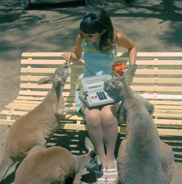 В 60-е Австралия активно привлекала туристов, и подобные кадры часто создавались для туристических брошюр, которые хорошо работали на имидж Австралии, как страны с уникальной и доступной фауной. Съемки обычно проходили в специальных парках, где кенгуру приманивали лакомством.