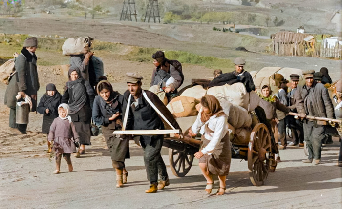 Люди эвакуируются из Сталинграда после начала сражений, 1942 год.