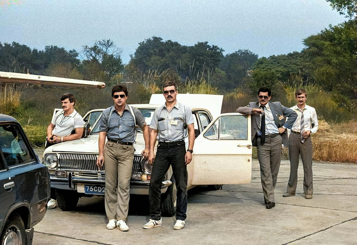 Сотрудники группы "А" 7-го управления КГБ СССР фотографируются для личного фотоархива, конец 1980-х годов.