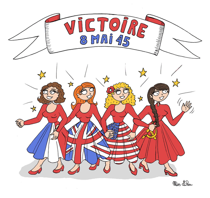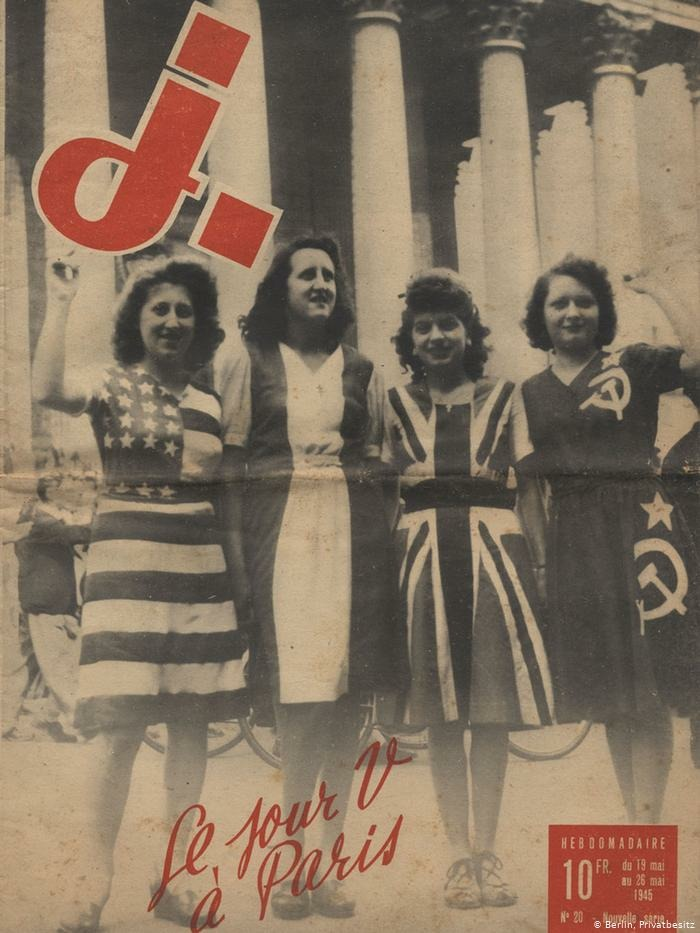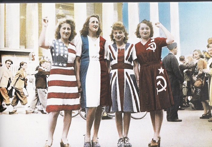 8 мая 1945 года в толпе празднующих победу в Париже настоящий фурор произвели девушки в платьях цветов государств-союзников