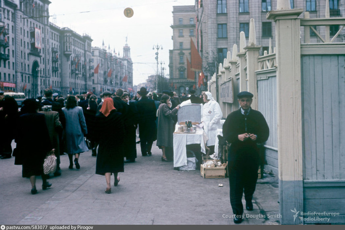 Это фото сделано 1 мая на Советской площади, ныне Тверской. Фото 1954 года, Мартин Манхофф.