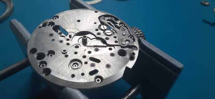 Ротор имеет повреждение, далее помимо того что нет колеса сильно повреждено отверткой отверстие, это из-за того что с обратной стороны "мега" часовщик пытался таким способом снять его. Знаем, проходили это)))