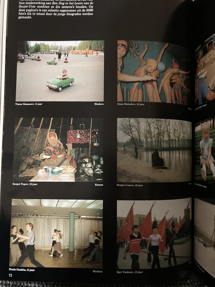 Достался мне атлас 1988 года. По описанию 100 фотографов в один день сделали фотографии в разных местах СССР. На каждой странице время съемки и описание. И авторы фото впечатляющие… тут много известных фотографов поучаствовало