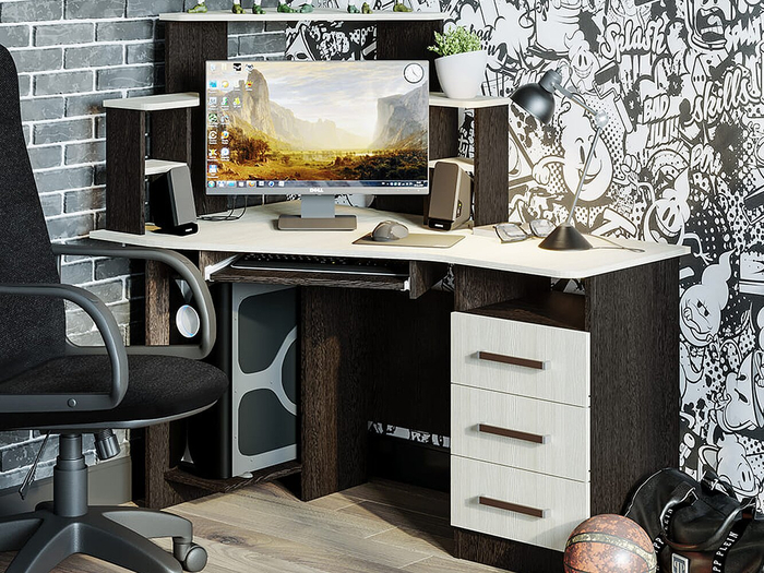 Ещё можно понять, если стол используется для письма от руки, но нет же, там места нет даже блокнотик положить! А тут локти висят, между мышкой и клавой надо руку туда-сюда теребонькать! Плевать было на людей, главное к технике с уважением.