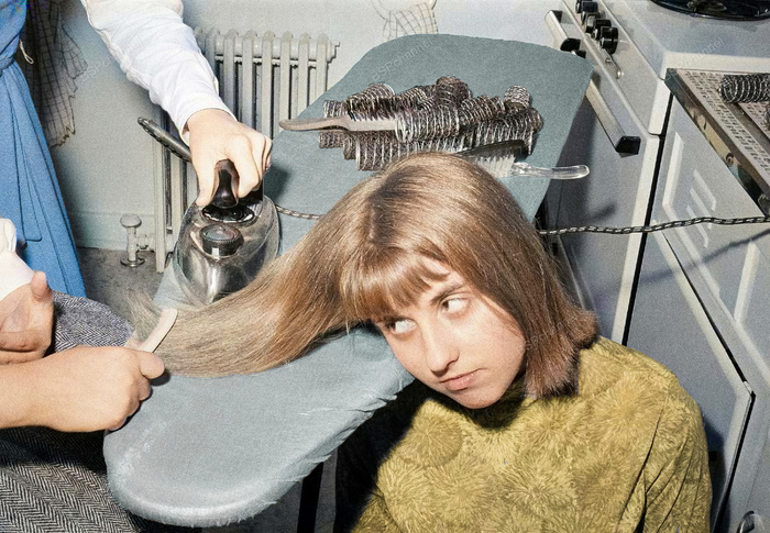 Выпрямление волос с помощью утюга, 1964 год.