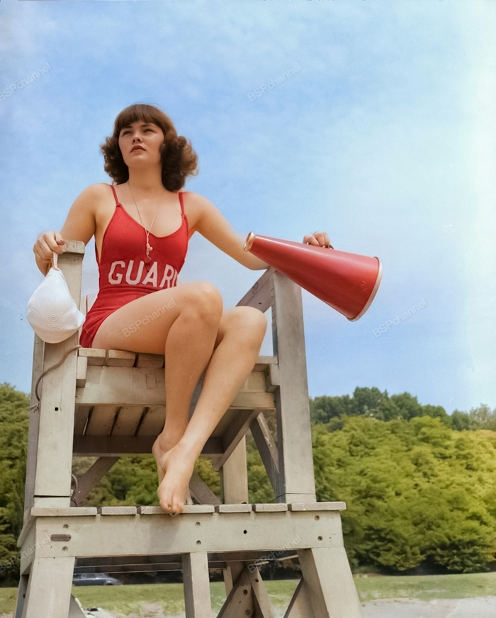 Модель Патрисия Шилд в роли спасателя, 1940 год.