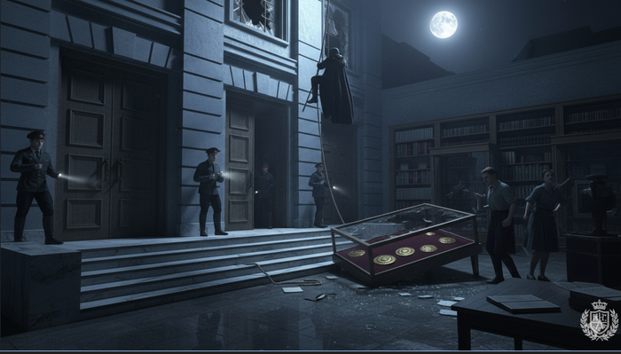 Преступник действовал с хладнокровием профессионала: спустился по верёвке с крыши музея, разбил окно второго этажа, расколотил витрину и скрылся с добычей за считанные минуты. Сигнализация сработала, но вор уже исчез во тьме. Размер ущерба составил не менее 500 тысяч рублей — фантастическая сумма для того времени, но художественная ценность утраченных реликвий вообще не поддавалась денежному выражению.