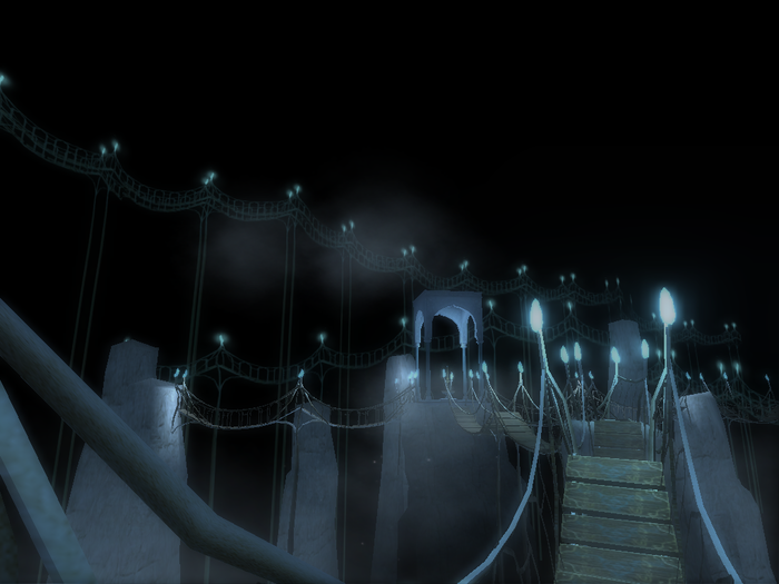 Пробираясь по развалинам находим коридор, который ведёт в странное место. «Кажется, я уже не во дворце»