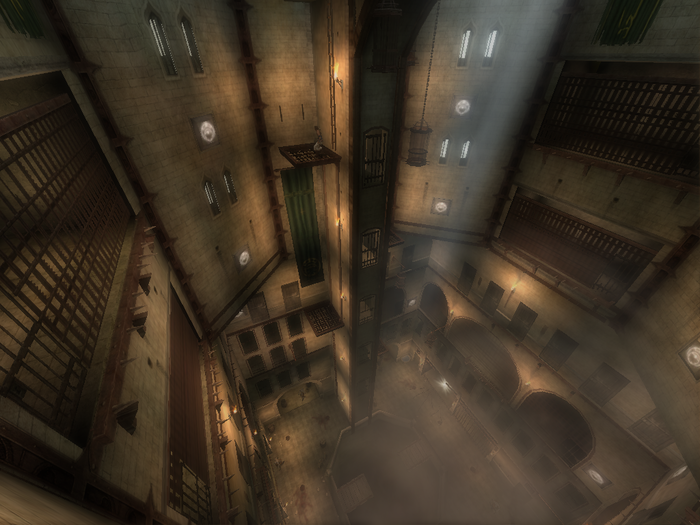 Проходим наконец-то в нужную башню и нас запирают. А, нет, вот это лифт, оказывается.