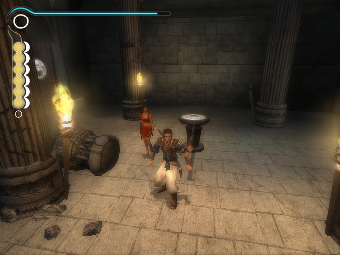 Кинжал, конечно, спасён, но Принц с обиженной Фарой оказываются в каком-то склепе. Фара скрывается, а мы спускаемся всё ниже и ниже в её поисках, пока не выходим в помещение с множеством проходов на двух этажах.