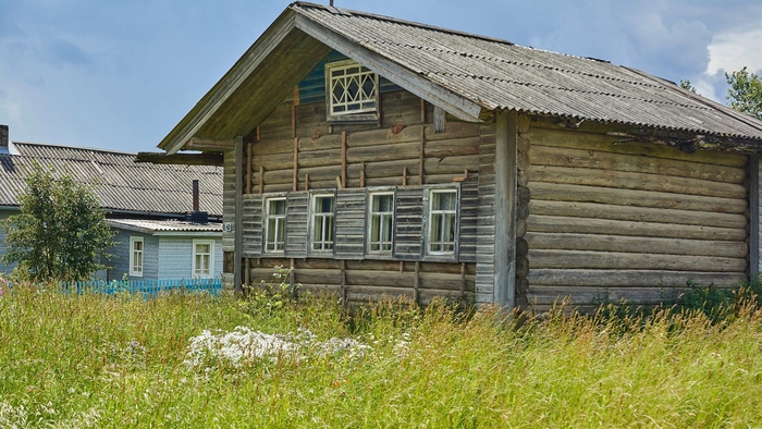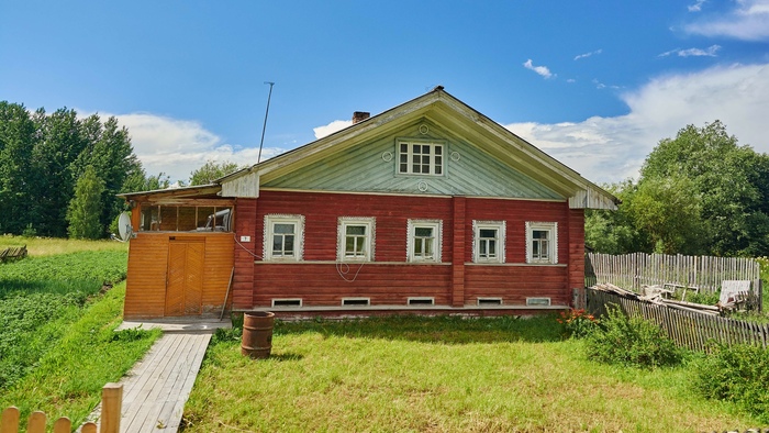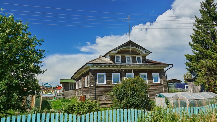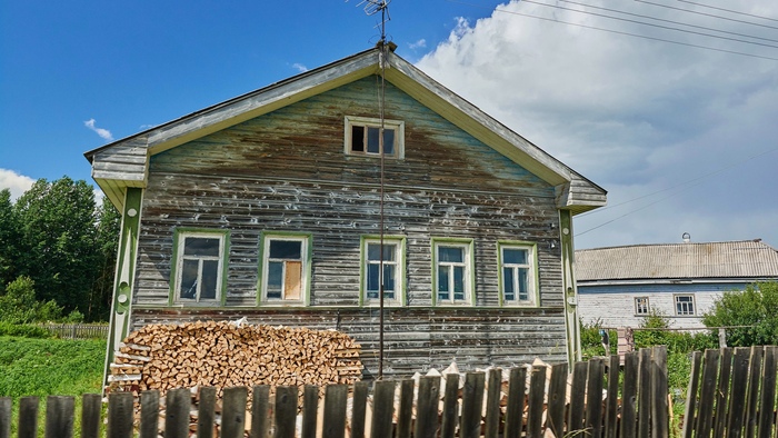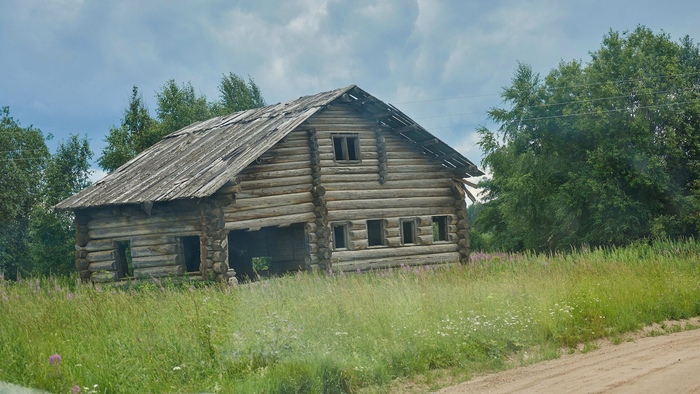 А, ну да, мы же ехали небыстро, поэтому я мог на обе стороны вертеть объективом. Это тоже пустой дом, скорее всего. Всё вокруг заросло, да и обшивка куда-то делась.