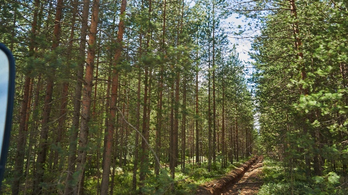 Это после Верховажья мы едем сквозь сосновый бор. Вообще ништяк, там можно почти в любом месте поставить палатку, чего я хочу сделать.