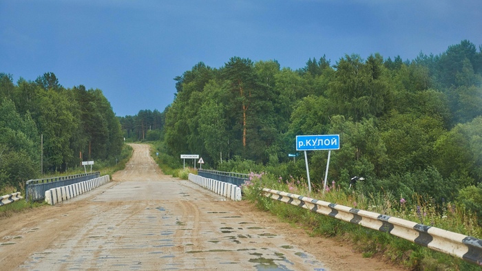 Река Кулой перед въездом в Урусовскую. Тут уже 7 километров до Архангельской области, но туда, мы, вроде не въезжали.