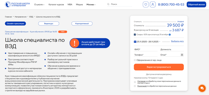 Школа специалиста по ВЭД от Русская Школа Управления — сочетание 70% практической и 30% теоретической информации дает возможность позволяет сразу применять знания в настоящей внешнеэкономической деятельности.