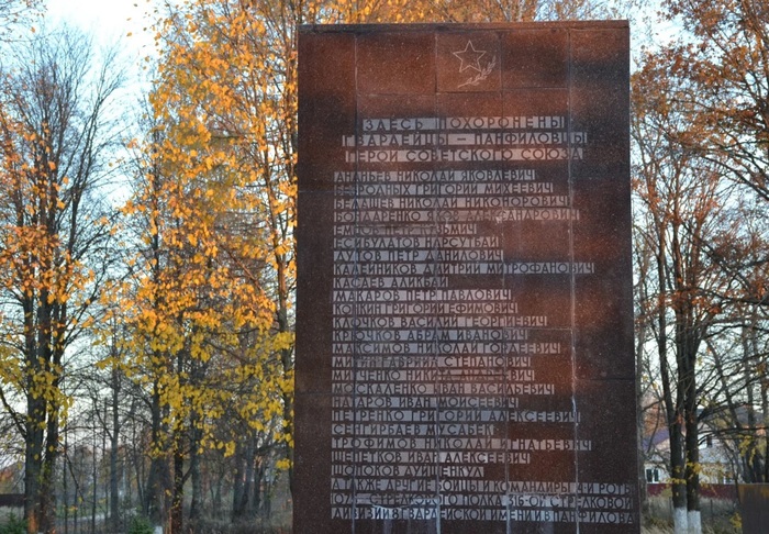 Опросом местных жителей выяснено, что бои дивизии им. Панфилова с немецкими танками происходили в ноябре 1941 года на территории Нелидовского с/совета. Московской области.