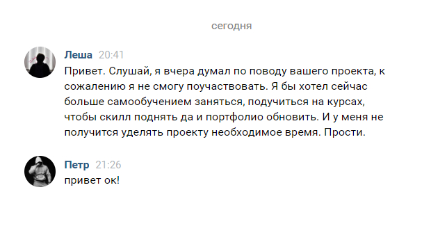 Опытным путем было выявлено, что средний срок выгорания 2-3 месяца, после чего вновь прибывшие, к сожалению, покидают проект под самыми разными предлогами.