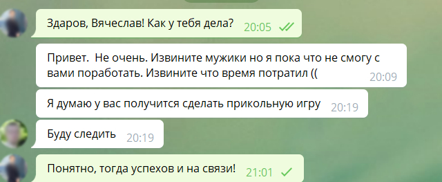Иногда будут встречаться и положительные комментарии людей, такие отзывы очень важны, так как дают понимание, что ”все не зря” и кто-то будет рад вашей игре.