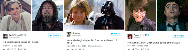 Под конец года пользователи сети решили продемонстрировать, насколько же тяжелым был 2016-й. В вирусном масштабе по соцсетям распространился флешмоб «Я в начале и конце 2016 года». В двух картинках они объяснили, как сильно потрепал уходящий високосный год их лично, а также весь мир в целом.
