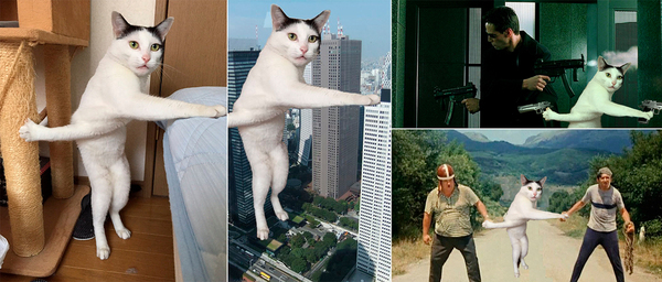Зимой в интернете активно «фотошопили» кота, который слишком эмоционально сражался с когтеточкой. Широко разинутая в безмолвном крике пасть животного напомнила сцены известных фильмов и картин, что не преминул обыграть интернет.