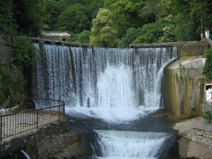 Каскад из семи прудов на реке Псырцха, по центру поставлена плотина с водопадом