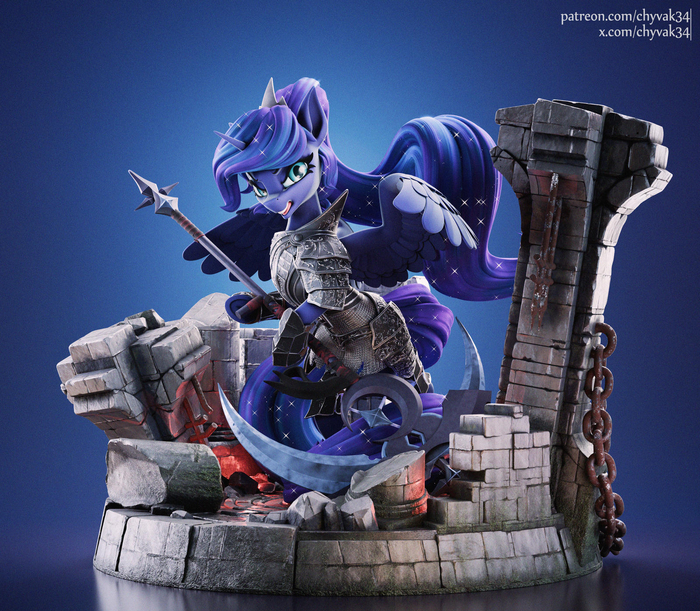 Я давно не создавал женских персонажей, поэтому решил сделать её для практики женской анатомии. Хотел показать её очень сильной женщиной, в формате статуи. Поскольку её создал Альтрон, я прикрепила к подставке классическую голову Альтрона.