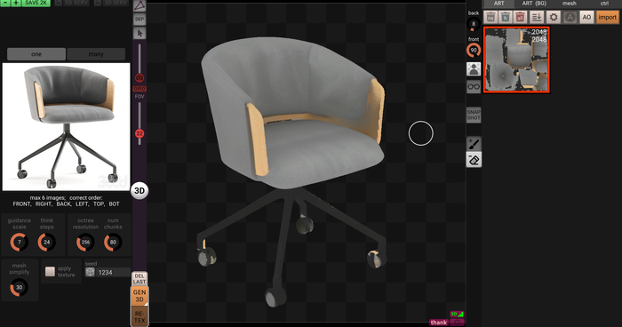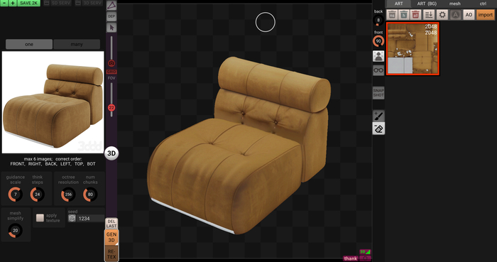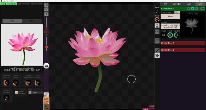 Помимо всего прочего я попробовал генерацию моделей через этот же софт, но с движком Hunyuan 2. Выходит интересно!
