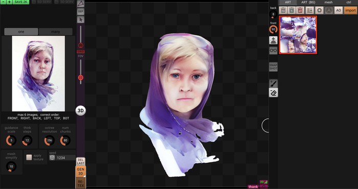 Выводы: софт, генерирующий 3д модели по картинкам еще достаточно сырой. Но в нужных руках и с доработкой - вполне себе ничего!