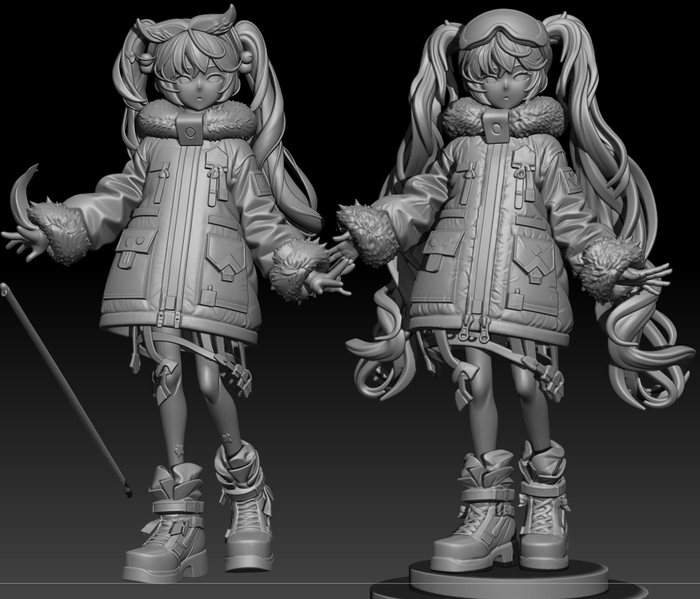 Но я не остановилась. Разделив сгенерированную модель на части (голова, куртка, ноги, ботинки), начала работу над каждой: перестраивала сетку, исправляла ошибки, детализировала. Итог моих усилий на фото.