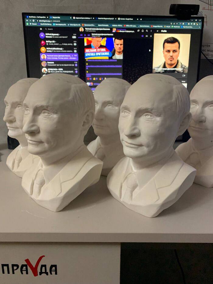 Пластик - лёгкий материал, бюст - в подсознании многих, нечто монументальное из гипса, мрамора, металла. Именно такого эффекта и хотелось добиться в итоге. Во имя творчества и опыта, с разрешения заказчика, покраска не оговаривалась и была частью сюрприза.
