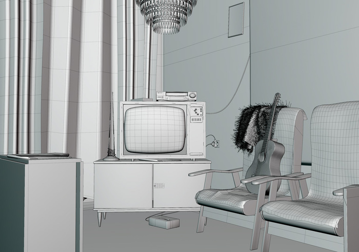 Далее. В начале и конце "Корпорации Монстров" имеются сцены разных квартир, но на самом деле по-сути одна сцена является переделкой из другой, можно сказать, что капельку схалтурили) Камера расположена в том же самом месте и под тем же самым углом, только чуть опущена. Рамы окон одинаковые, хотя створки чуть сдвинуты по высоте. Столик под лампой перекочевал без изменений. Коврики одинаковые, но имеют разный скейл и текстуры. Кровать расположена в абсолютно том же самом месте, 3д-модель подушки абсолютно та же самая и расположена так же с краю, ребёнок имеет ту же анимацию. Расположение основных элементов сцены идентичное)