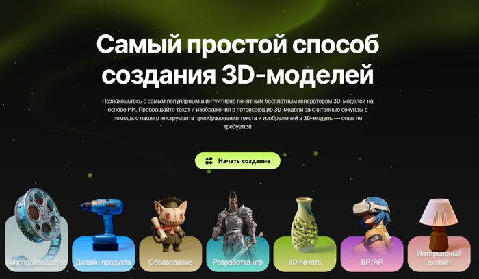 бесплатная нейросеть для создания 3D моделей и гибкие платные тарифы делают сервис доступным и для одиночных креаторов, и для студий/enterprise-команд.
