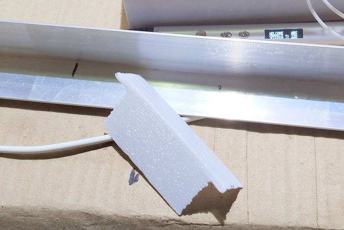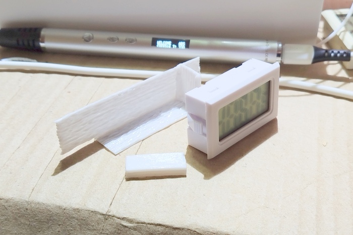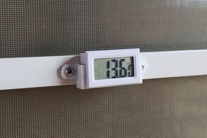 2. Когда-то давным давно я хотел заказать в ателье по 3D печати крепление для дешевого электронного термометра-гигрометра, который я хотел установить на улицу в подходящее для него место - между винтами крепления ручки москитной сетки на окне в летней кухне. Но там были какие-то сложности, связанные с тем, что всякие ателье с трудом выходили на связь, и мне было совсем неудобны адреса их расположения. Я не понимал, как это всё работает и сколько по деньгам в итоге мне бы это обошлось. В итоге на ателье я забил, а при очередном посещении деревни я нашел ПВХ-уголок и с определенным трудностями, связанными с нагревом и остыванием пластика в определенном положении, сделал крепление из него. Как временное решение получилось вроде норм.