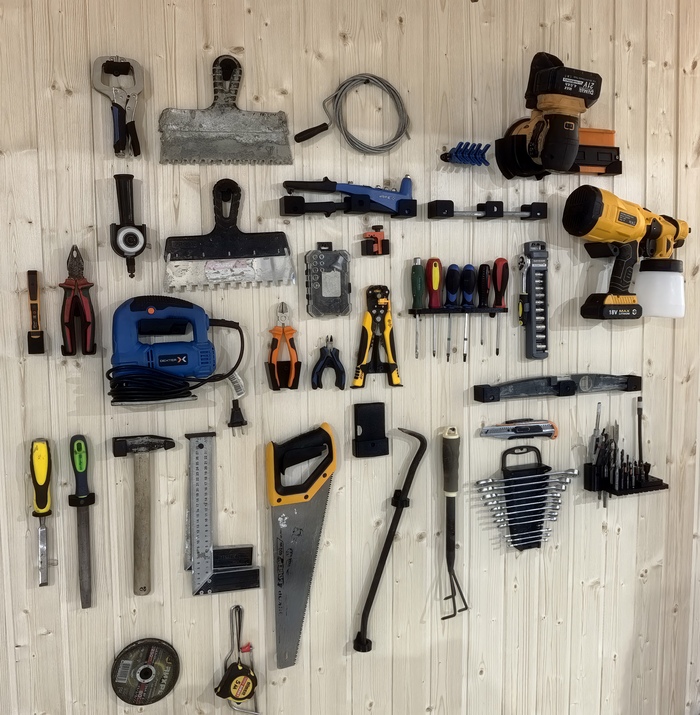 Переношу все инструменты из дома в мастерскую и для своих разрозненных инструментов сделал крепеж: "Внутренний слоняра доволен"))