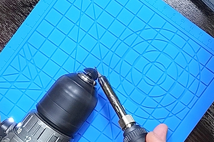 Так как заглушка предполагается быть круглой, то есть это будет деталь вращения, то и делать её удобнее на вращающейся поверхности. Из имеющихся подручных средств, которые могут относительно медленно вращать некую тонкую цилиндрическую поверхность - это шуруповерт.