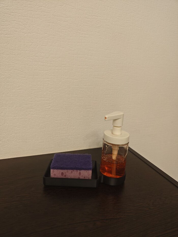 В дополнение к кухонному органайзеру смоделлировал и напечатал подставку в которую помещается икеевская мыльница и где можно держать губку для посуды. Хочется эту конструкцию чем-то дополнить, но пока остановился на таком варианте.