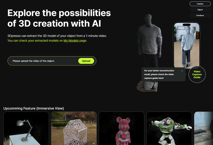 3Dрresso — облачный сервис, который превращает короткие видео с телефона в текстурированные 3D-модели реальных объектов с генеративными ИИ-текстурами.