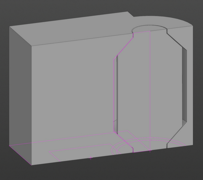 И наконец, вырезаем отверстие под трубу и снимаем фасочки. Можно печатать!